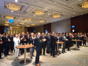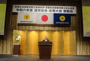 全国社会保険労務士政治連盟(以下「全国政連」という。)と全国社会保険労務士会連合会(以下「連合会」という。)共催による懇親会が、令和6年6月28日午後5時30分、パレスホテル東京(東京都千代田区)において開催された。