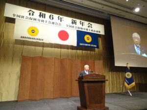 全国社会保険労務士政治連盟(以下「全国政連」という。)と全国社会保険労務士会連合会(以下「連合会」という。)共催による新年会が、令和6年1月22日、パレスホテル東京(東京都千代田区)において開催された。