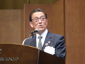 大野実連合会会長の挨拶で始まり、来賓の宮﨑政久厚生労働副大臣、森英介自由民主党社会保険労務士議員懇談会会長、竹内譲公明党社会保険労務士議員懇話会会長、枝野幸男立憲民主党社会保険労務士議員懇談会会長、古川元久国民民主党社会保険労務士制度推進議員連盟会長から祝辞を頂戴した。