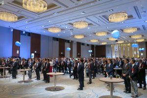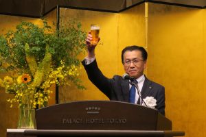 同日の通常総会で新会長に就任した若林正清連合会会長の挨拶で始まり、田畑裕明自由民主党社会保険労務士議員懇談会事務局長、竹内 譲公明党社会保険労務士議員懇話会会長、枝野幸男立憲民主党社会保険労務士議員懇談会会長からご祝辞を頂戴し、同日の定期大会で新会長に就任した石倉正仁全国政連会長の挨拶と乾杯の発声によって歓談の幕が開いた。